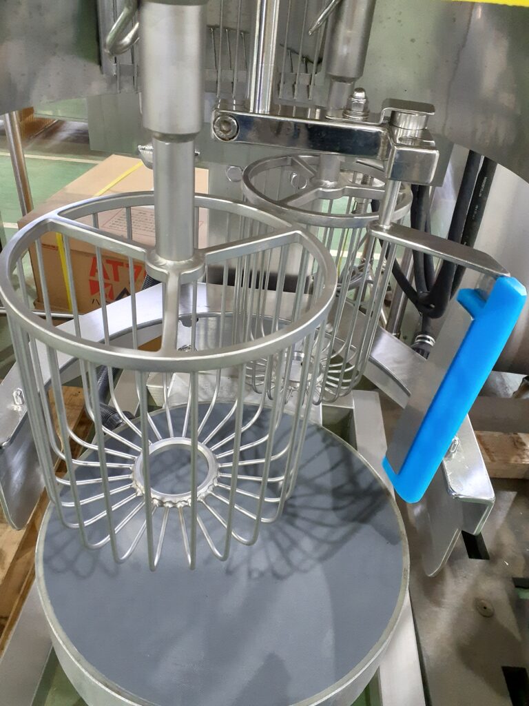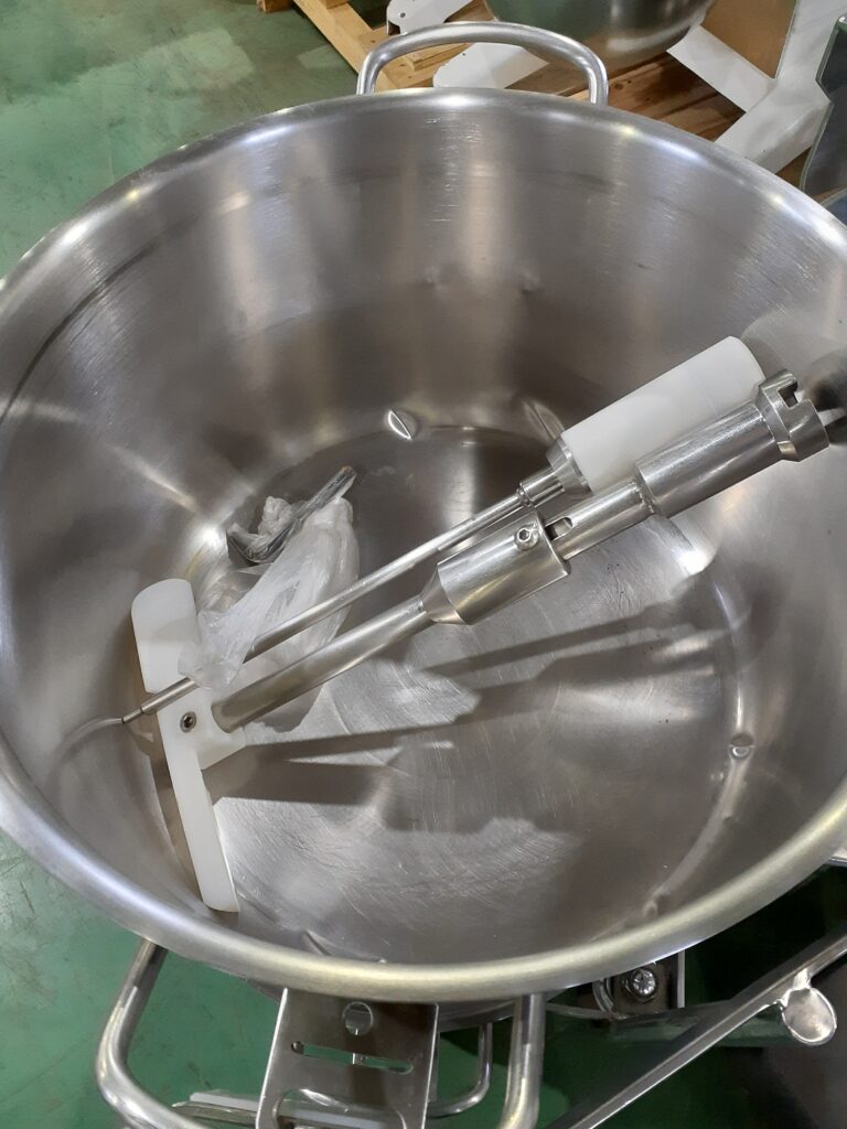 ただ生地を捏ねるだけではなく、煮込み炊込みなど加熱が出来る、多目的縦型ミキサーです。